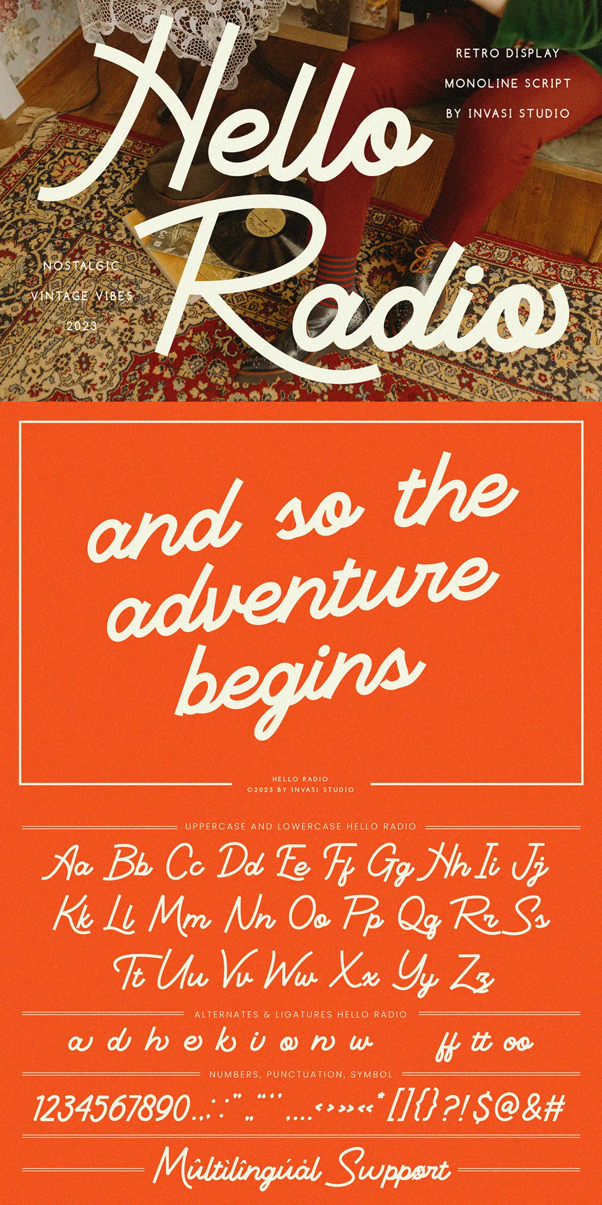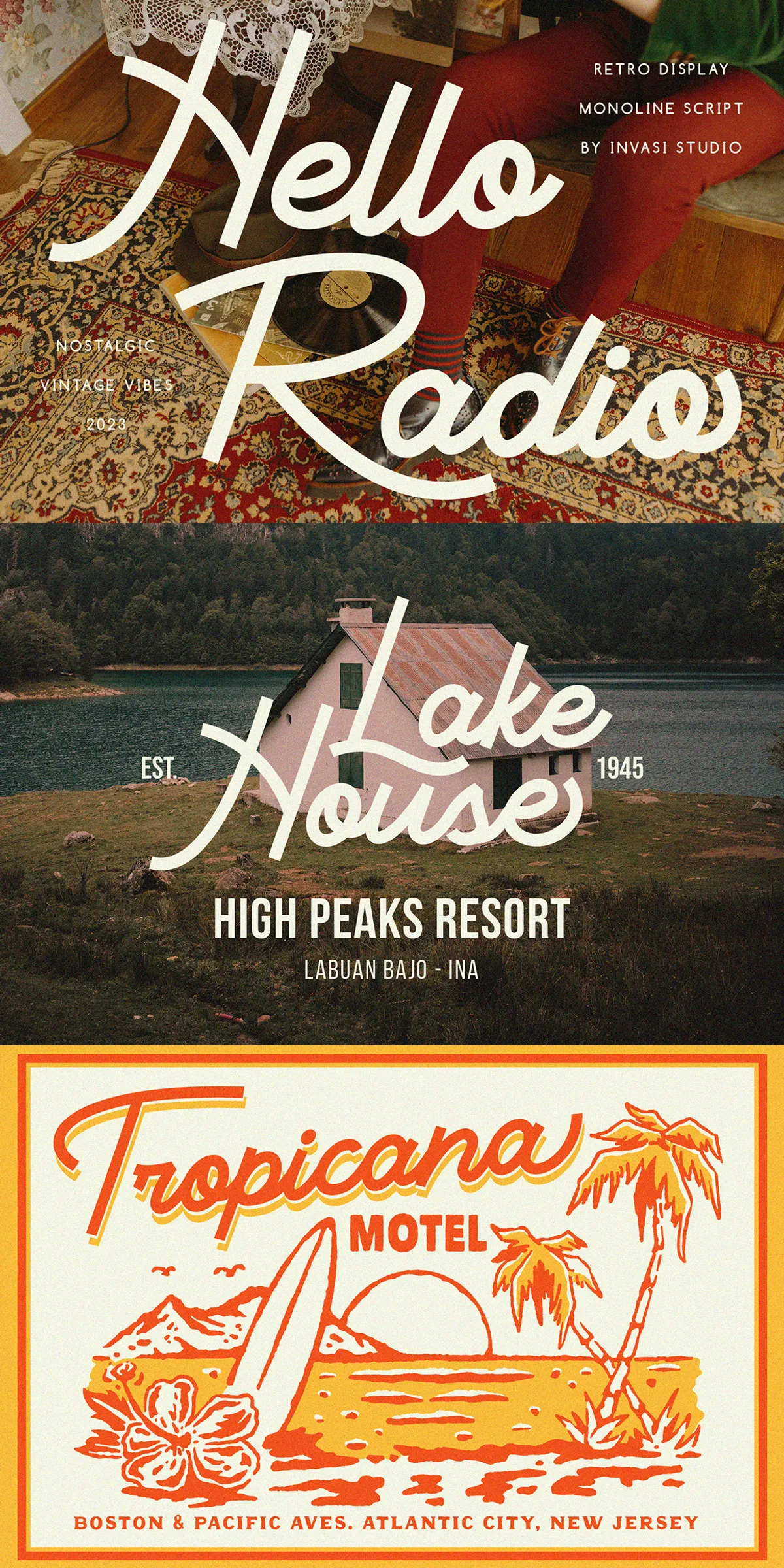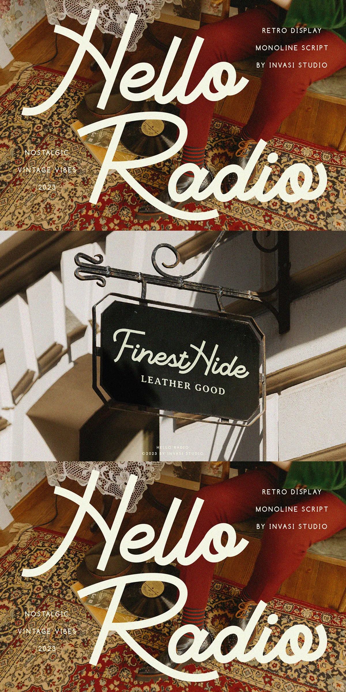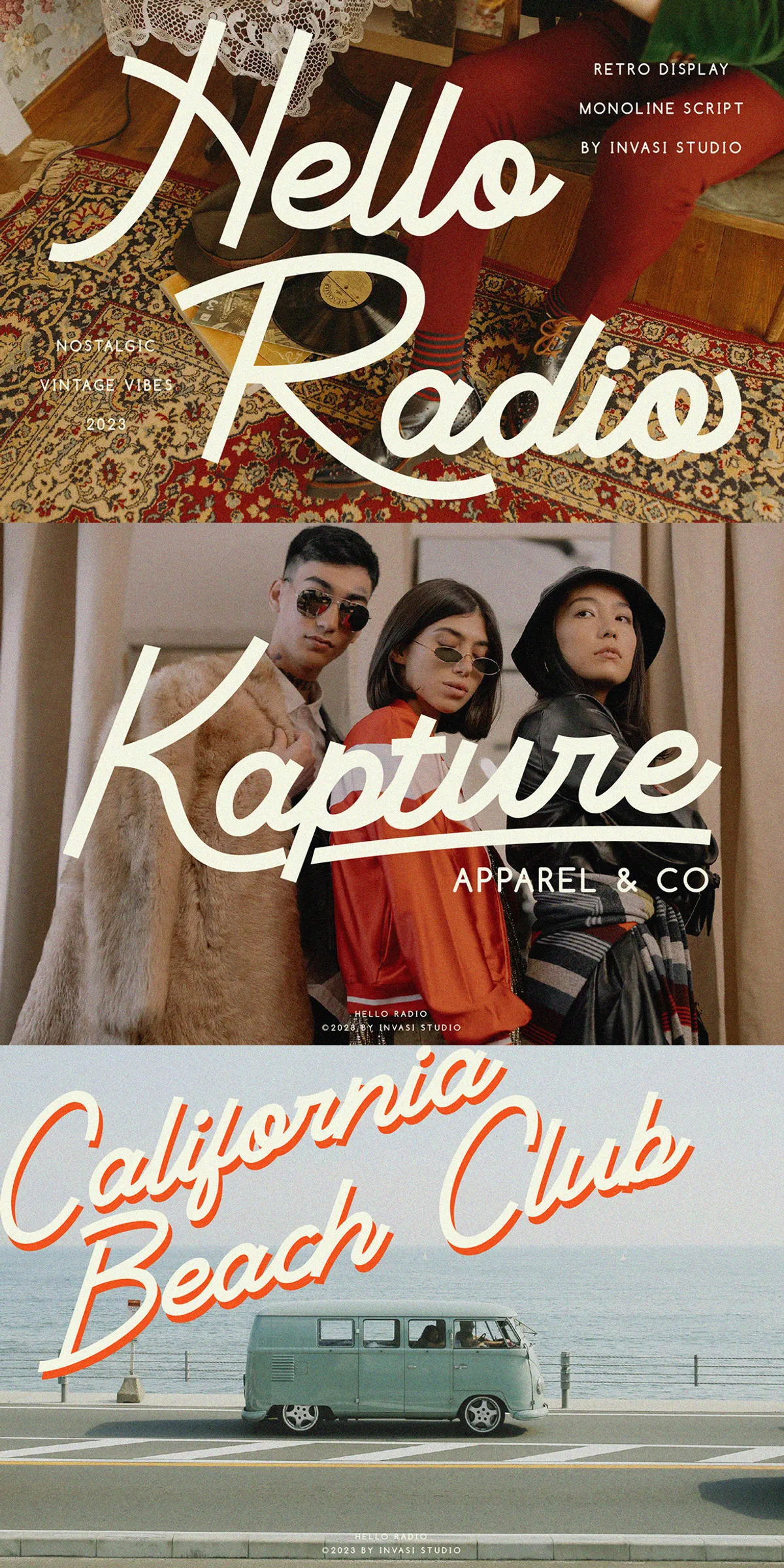 Whether you’re working on modern branding or nostalgic retro campaigns, Hello Radio fits like a glove. Its playful yet sophisticated look elevates any project with a fresh, authentic tone: