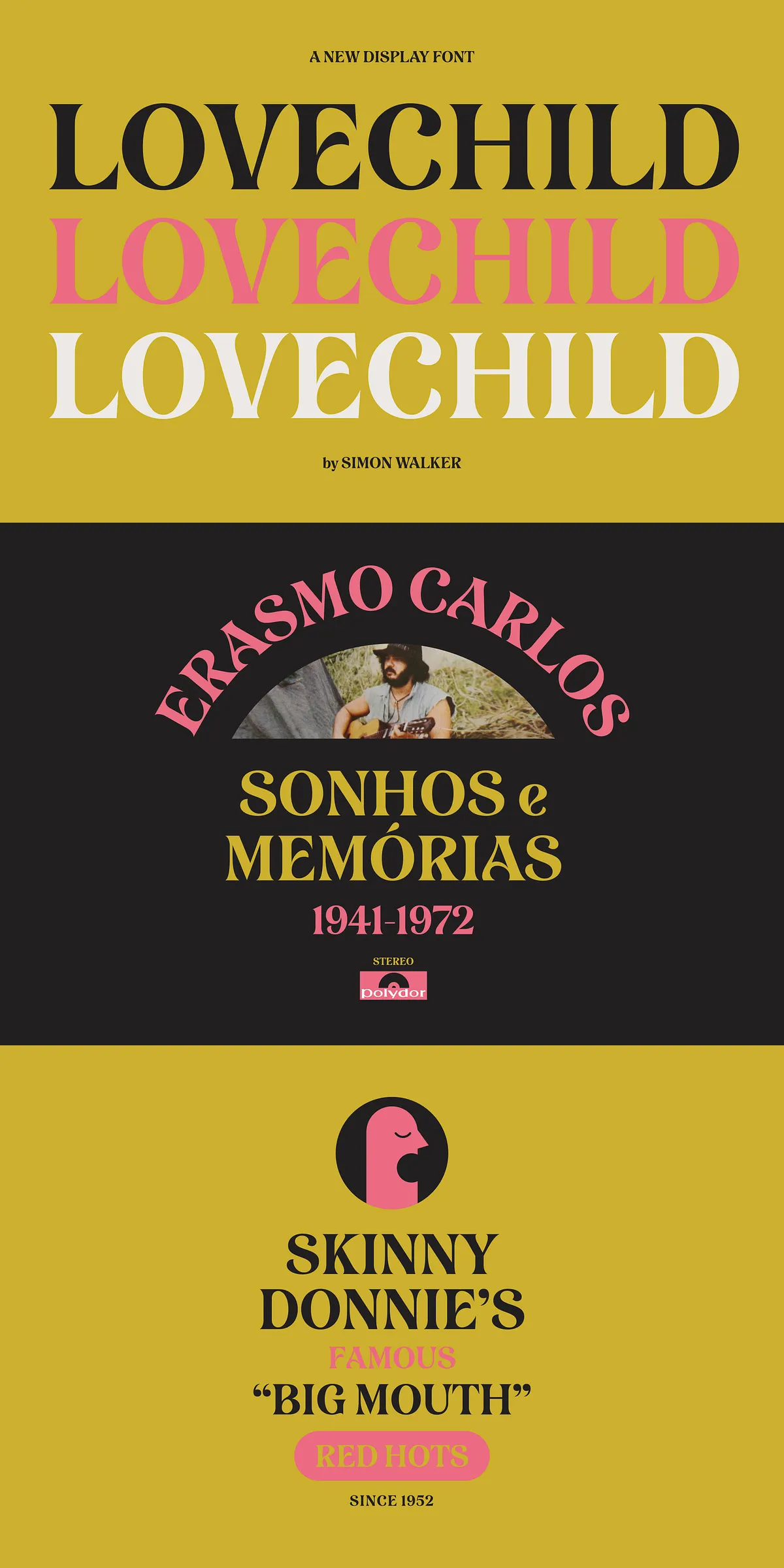 • Creative Pairings: Observe how Lovechild interacts with complementary fonts in headlines, captions, and body text, creating rich visual hierarchies that command attention.