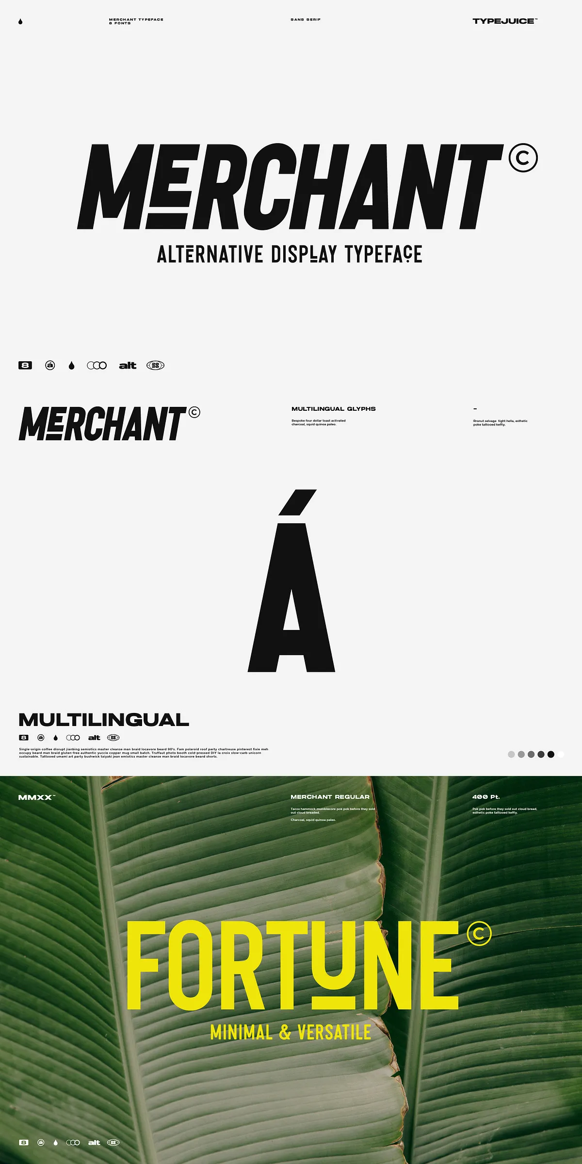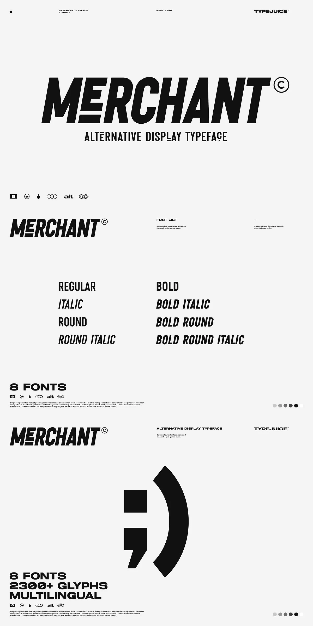 Merchant is built for global reach and design excellence, with support for over 2300 glyphs and comprehensive multilingual coverage. It supports Latin, Latin Extended, Greek, and Cyrillic scripts — making it perfect for international branding, multilingual websites, or global campaigns.