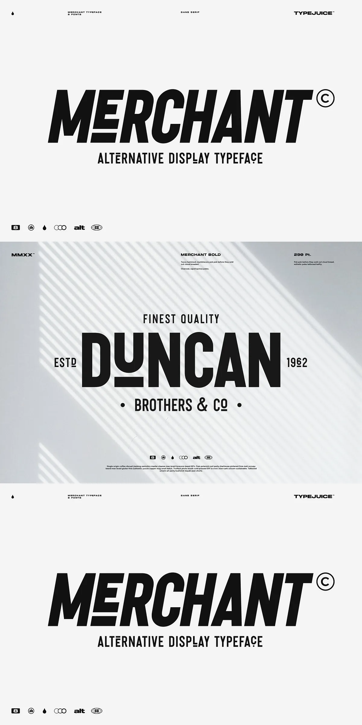 With optimized hinting, balanced spacing, and consistent rendering across devices, Merchant performs flawlessly in print, on screen, and in motion.