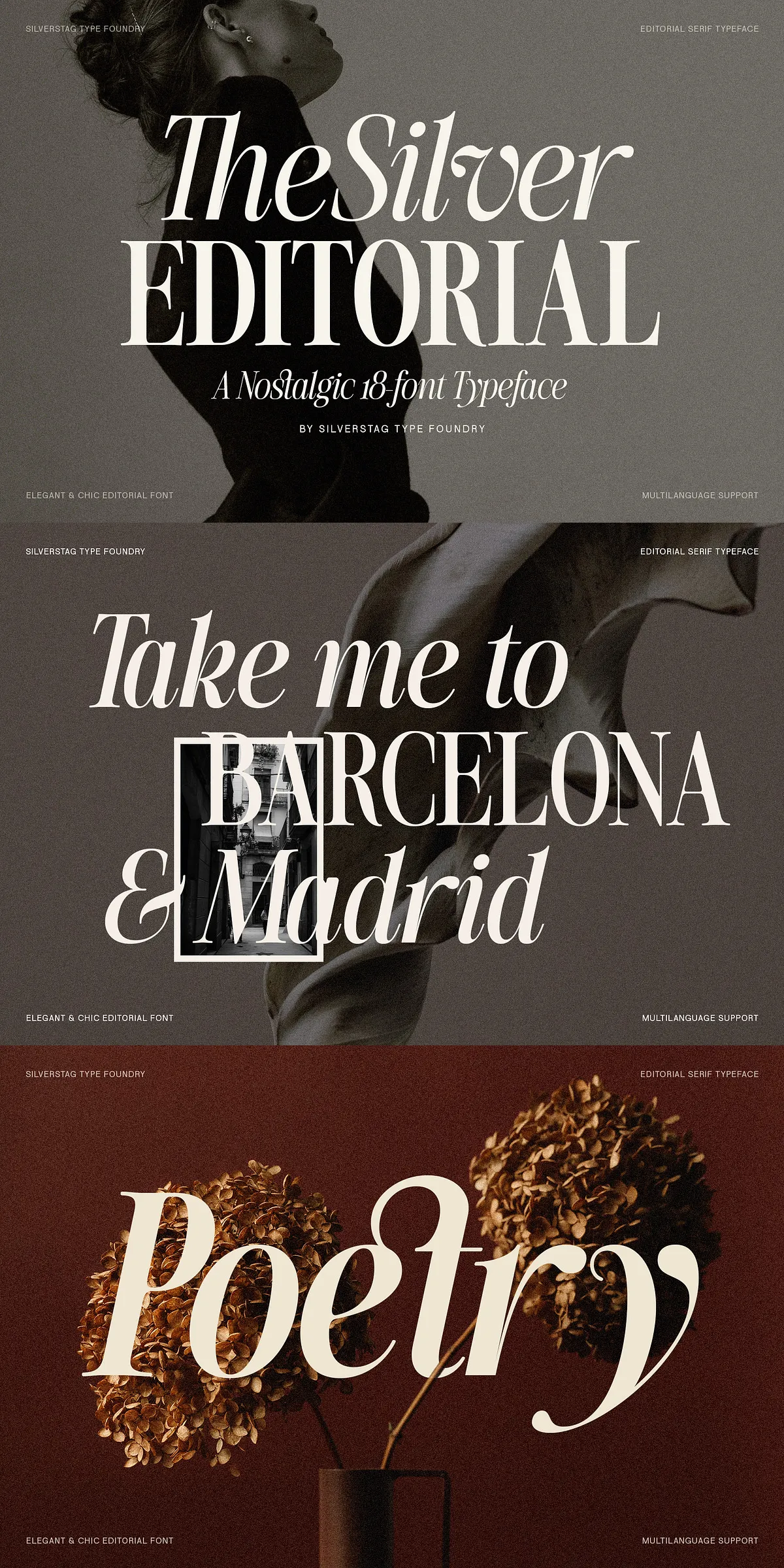 Let the serif do the talking—pair The Silver Editorial 2.0 with clean, neutral sans-serifs to let its elegance shine: