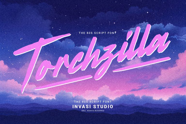 Ignite the neon glow of a bygone era with Torchzilla — a bold, electrifying font engineered for creators who live for the retro-fueled energy of the 80s and 90s. Whether you’re crafting a synthwave album cover, designing a vaporwave-inspired brand…