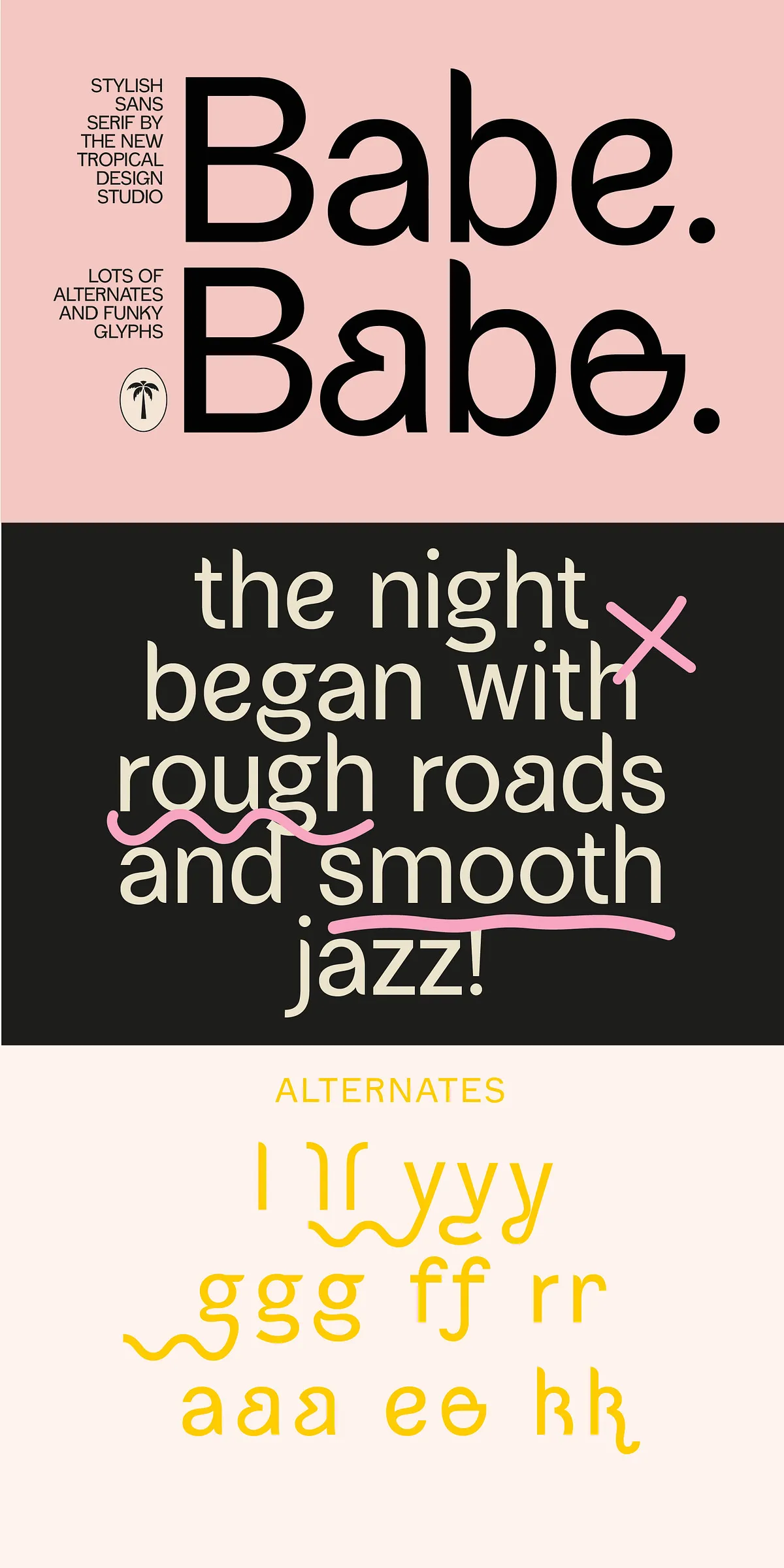 But it’s not just about looks. Babe Sans gives you real creative power. With a full set of funky alternates, you can instantly transform any text into a unique visual experience. Swap out standard letters for stylish variants, create dynamic headlines, or add personality to logos, packaging, and social media content.