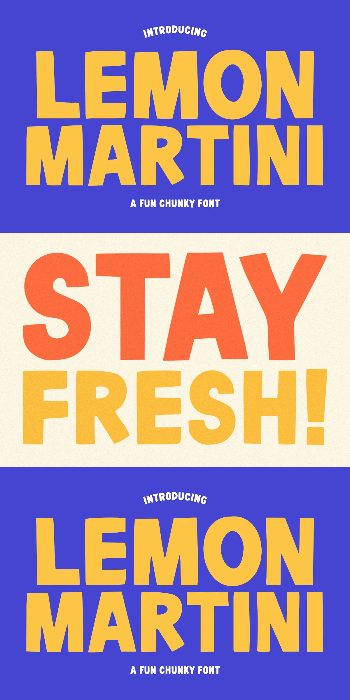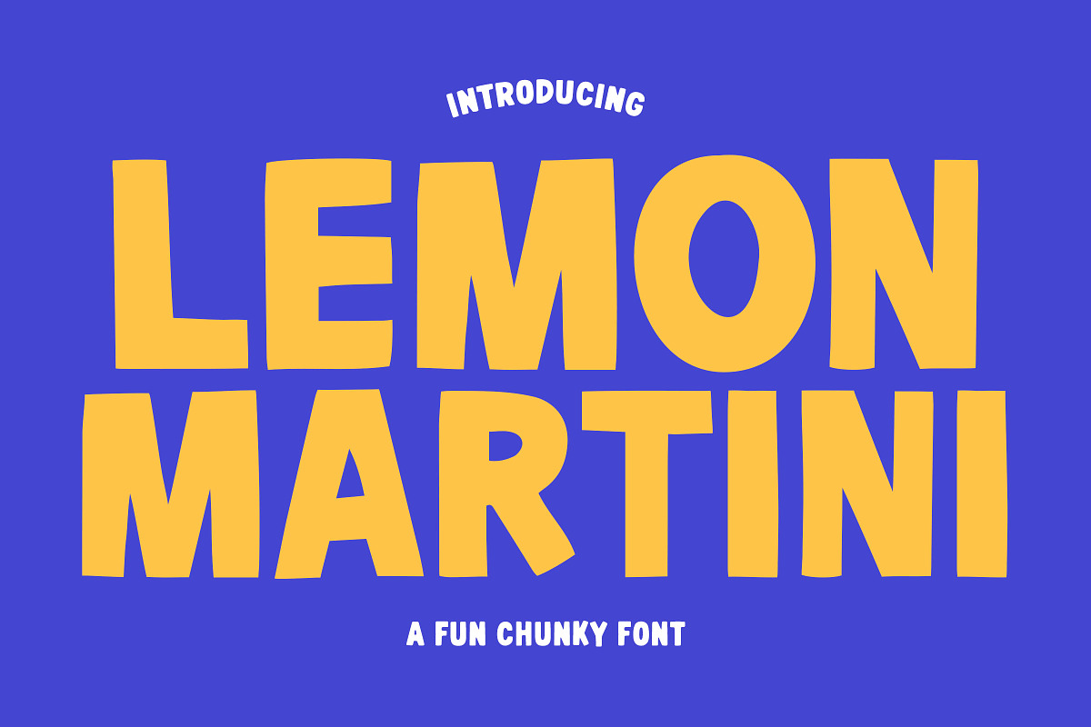 Meet Lemon Martini — a delightfully bold, chunky, and utterly fun typeface crafted for designers who believe creativity should be loud, lively, and full of personality. This is not a font for the shy — it’s a statement. Whether you’re designing for streetwear, party graphics, social media posts, or personalized gifts, Lemon Martini brings instant energy, charm, and bold visual flair to every project.