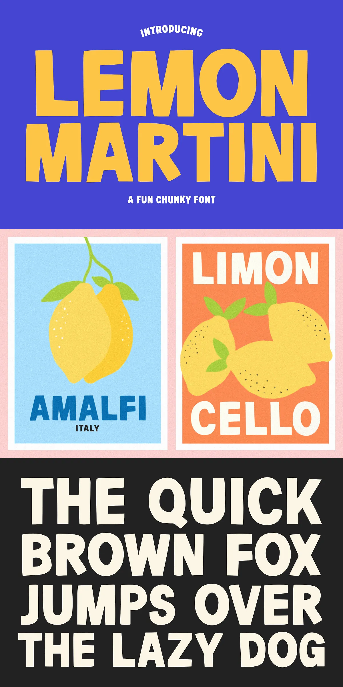 Lemon Martini turns every word into an experience. It’s not just about reading — it’s about feeling. You’re not just typing text; you’re injecting fun, confidence, and creative joy into your work. This font thrives in designs that celebrate individuality, creativity, and playful expression.