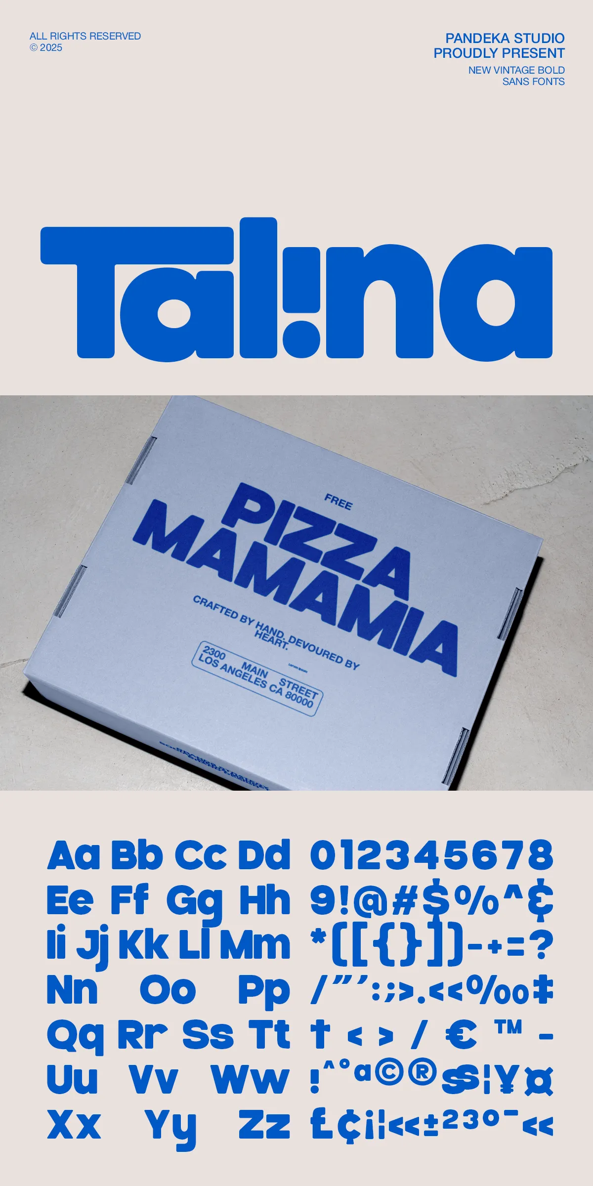 From toy brands to juice boxes, from kindergarten classroom posters to influencer product drops, Talina adapts seamlessly. It thrives in high-contrast layouts, where it commands space without overwhelming the message. Its clean structure ensures legibility even at small sizes, while its rounded edges soften the tone — making it perfect for brands that want to feel human, not harsh.