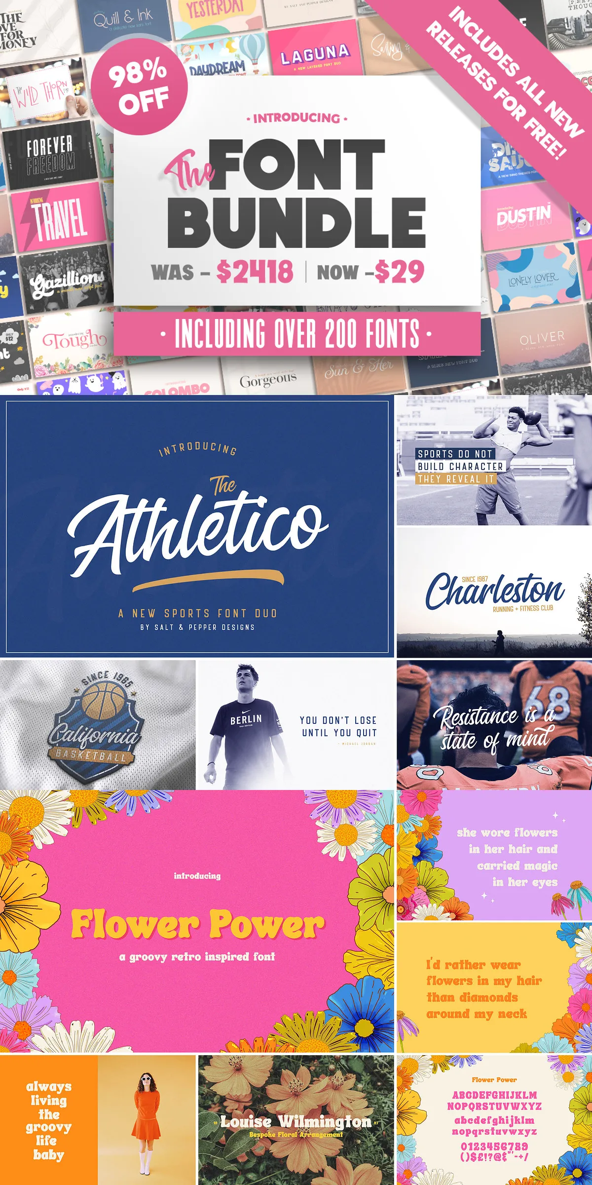 Imagine having access to thousands of fonts—every style you could ever need—in one seamless download. Whether you’re crafting logos, designing social media graphics, or working on print media, Salt & Pepper Designs gives you the tools to stand out instantly. From bold display fonts to delicate script styles, minimalist sans serifs to retro groovy typefaces, this bundle covers the full spectrum of modern and classic typography.