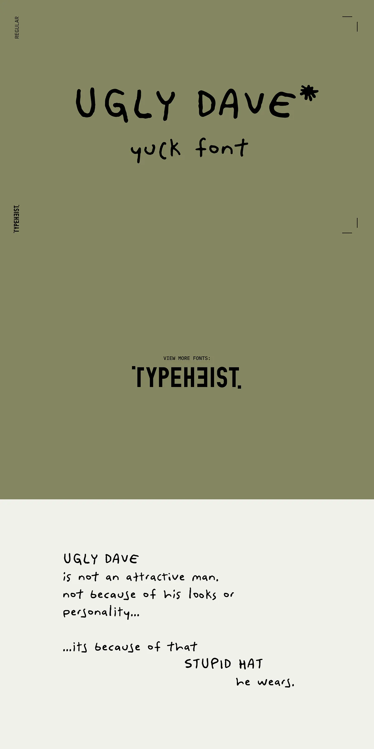 Meet Ugly Dave — the font that refuses to apologize for being messy. This isn’t a tidy script. This isn’t clean. This isn’t polished. This is perfectly bad. If you’ve ever wanted to make your text look like it was scribbled in haste by a child with no formal education, Ugly Dave is your new best friend.