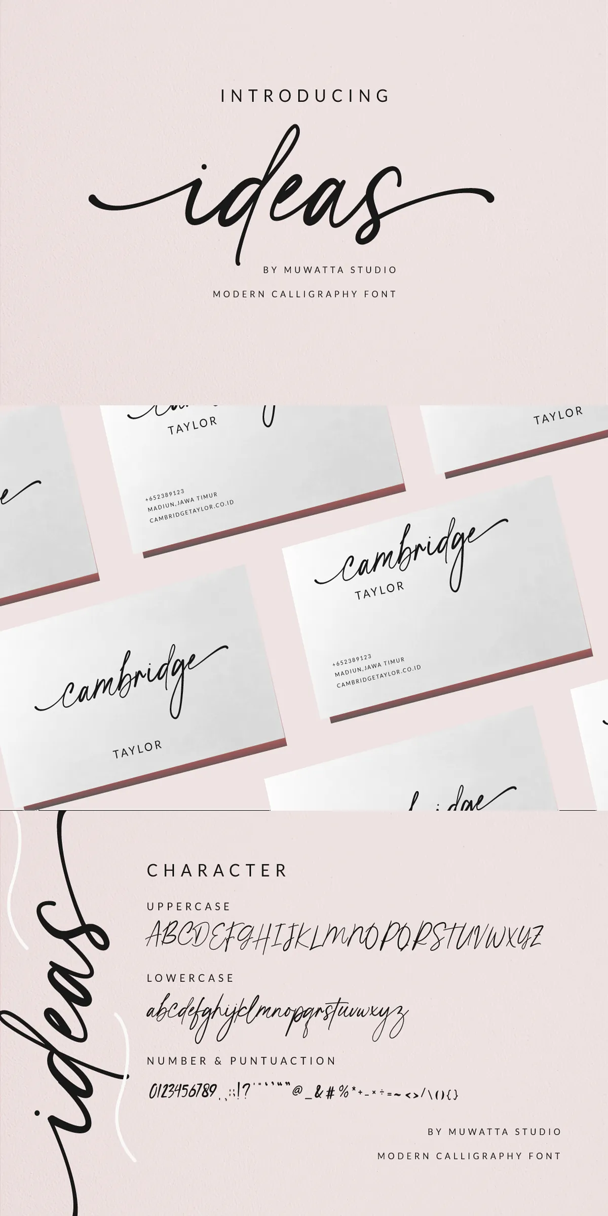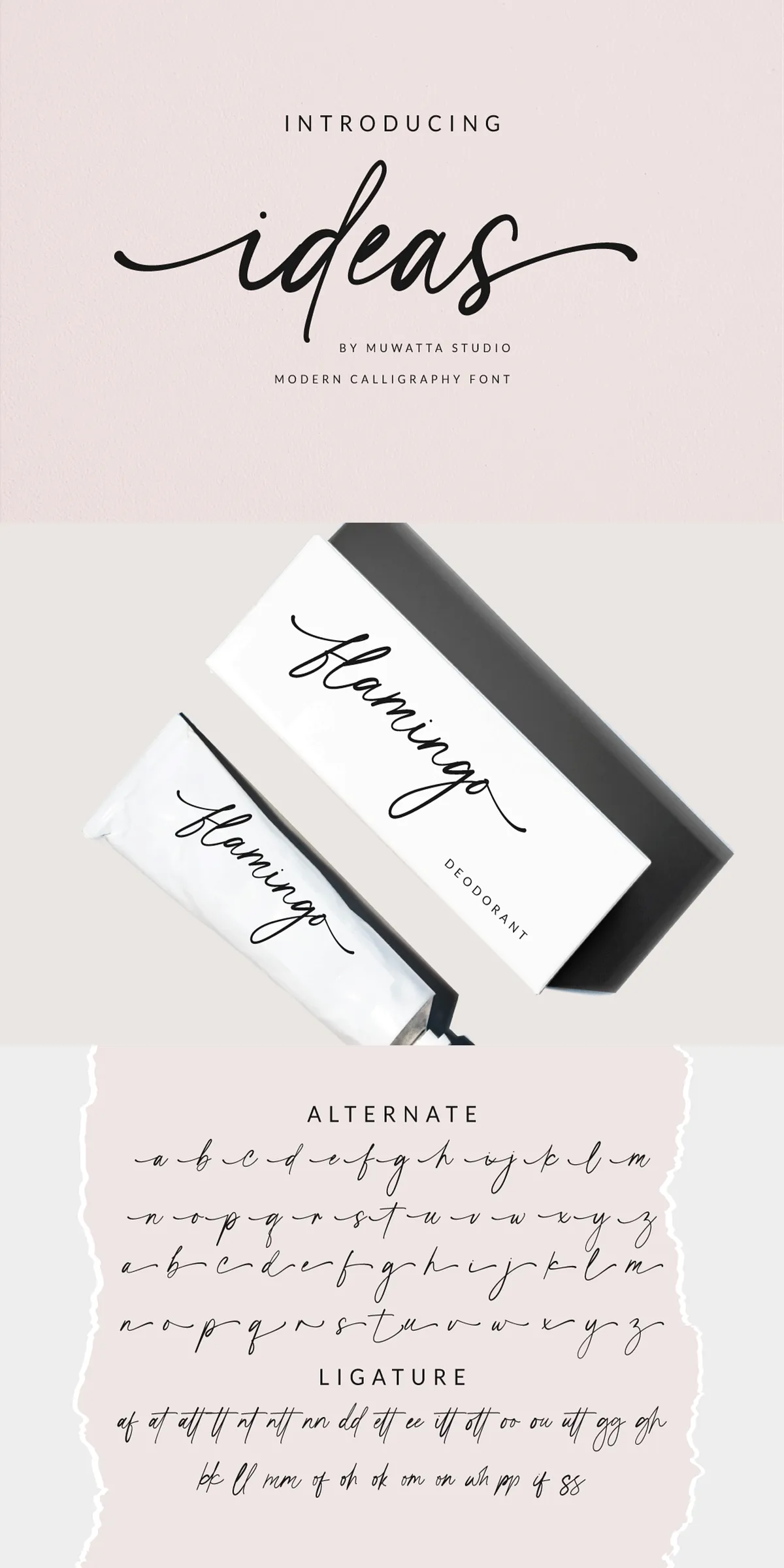 Discover Ideas, a premium typeface crafted to elevate the elegance of any project. Its refined strokes and fluid curves strike the perfect balance between classic calligraphy and contemporary flair, delivering a timeless yet fresh look that instantly upgrades invitations, wedding themes, fashion branding, and editorial layouts.