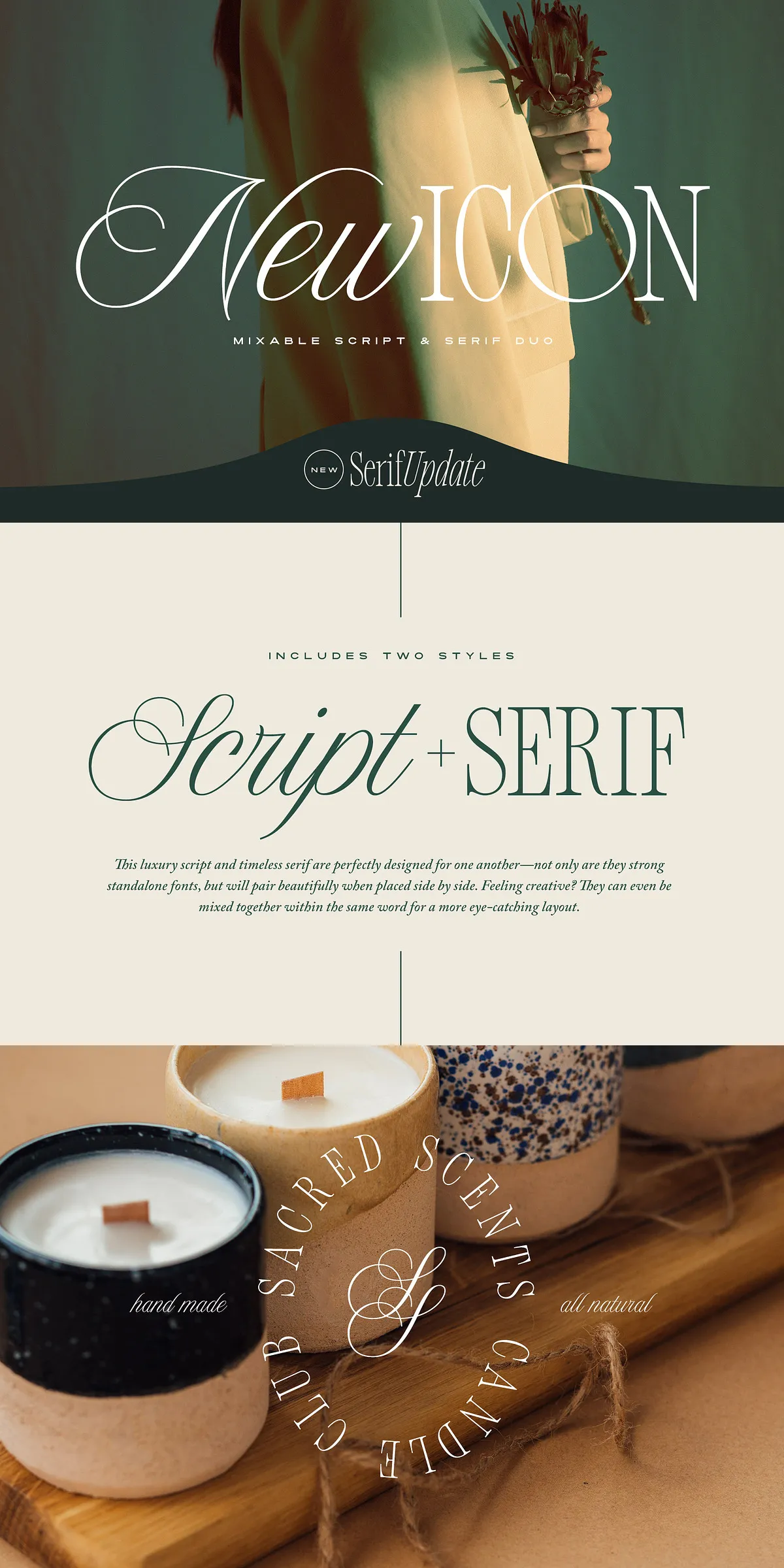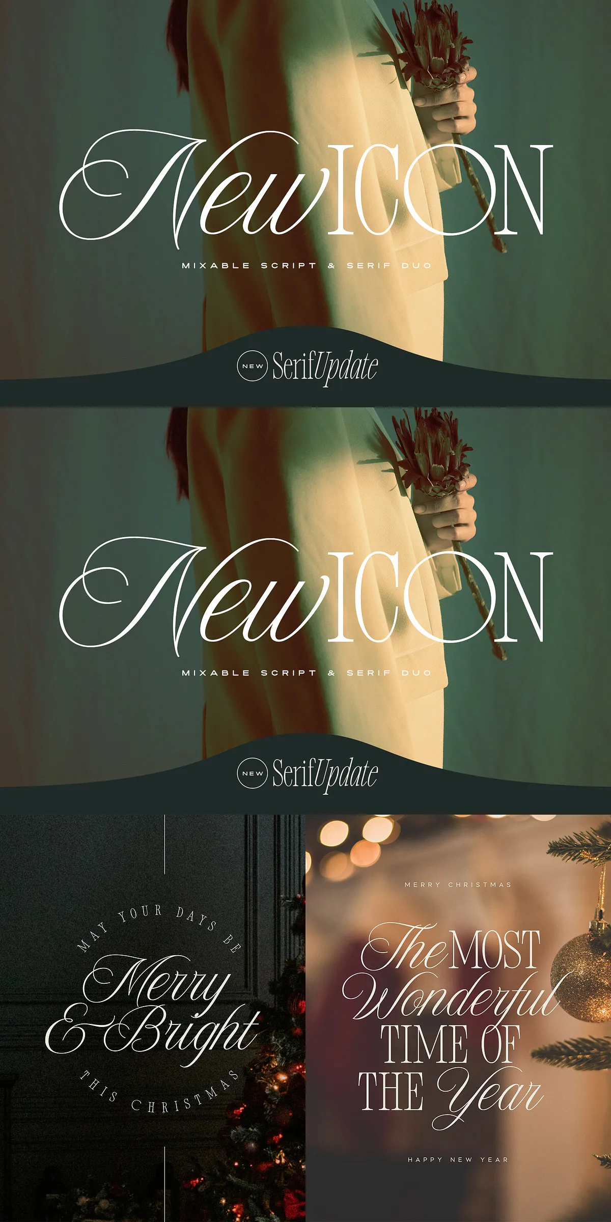 The New Icon Font Duo represents a fresh, elegant approach to typography by merging a luxury script with a classic serif font designed to complement each other perfectly. These fonts not only work as strong, standalone choices but also create visually striking pairings when used side by side. The unique ability to blend these fonts within the same word offers designers unmatched flexibility and creativity, enabling the creation of bold and sophisticated layouts that elevate any project.