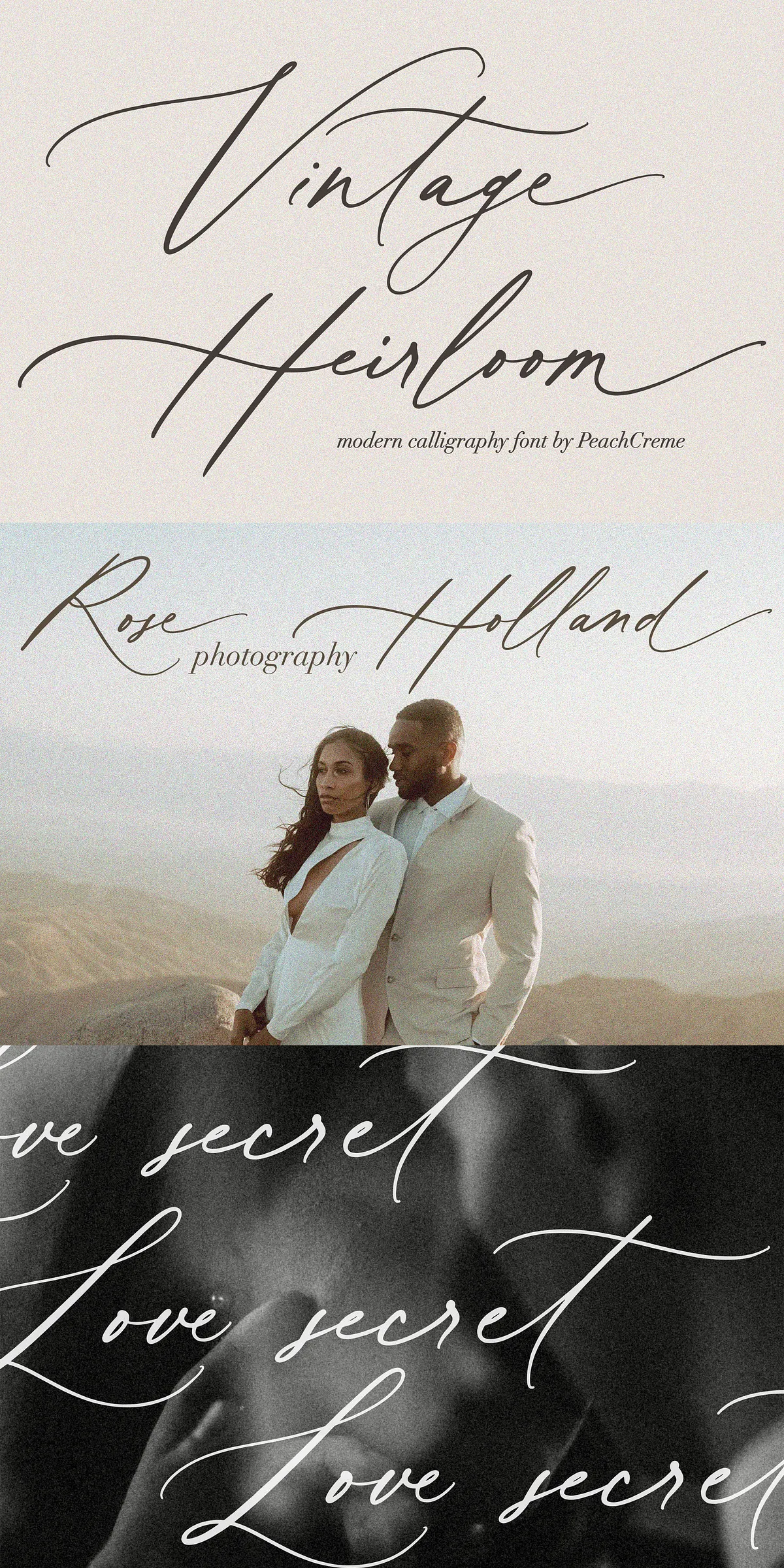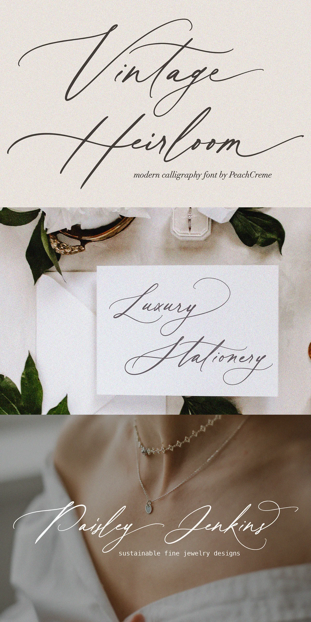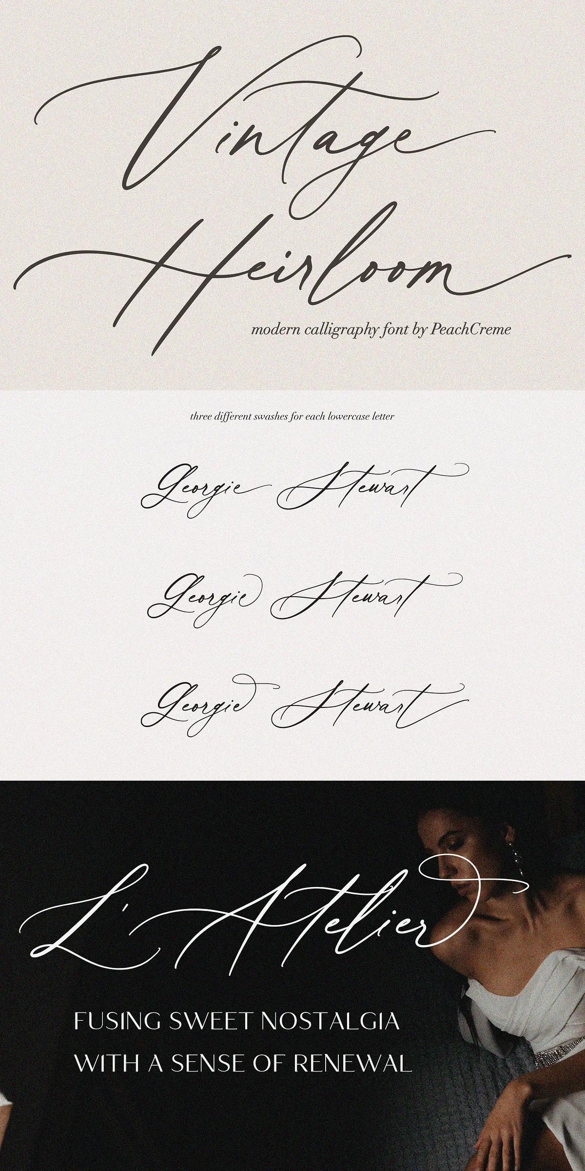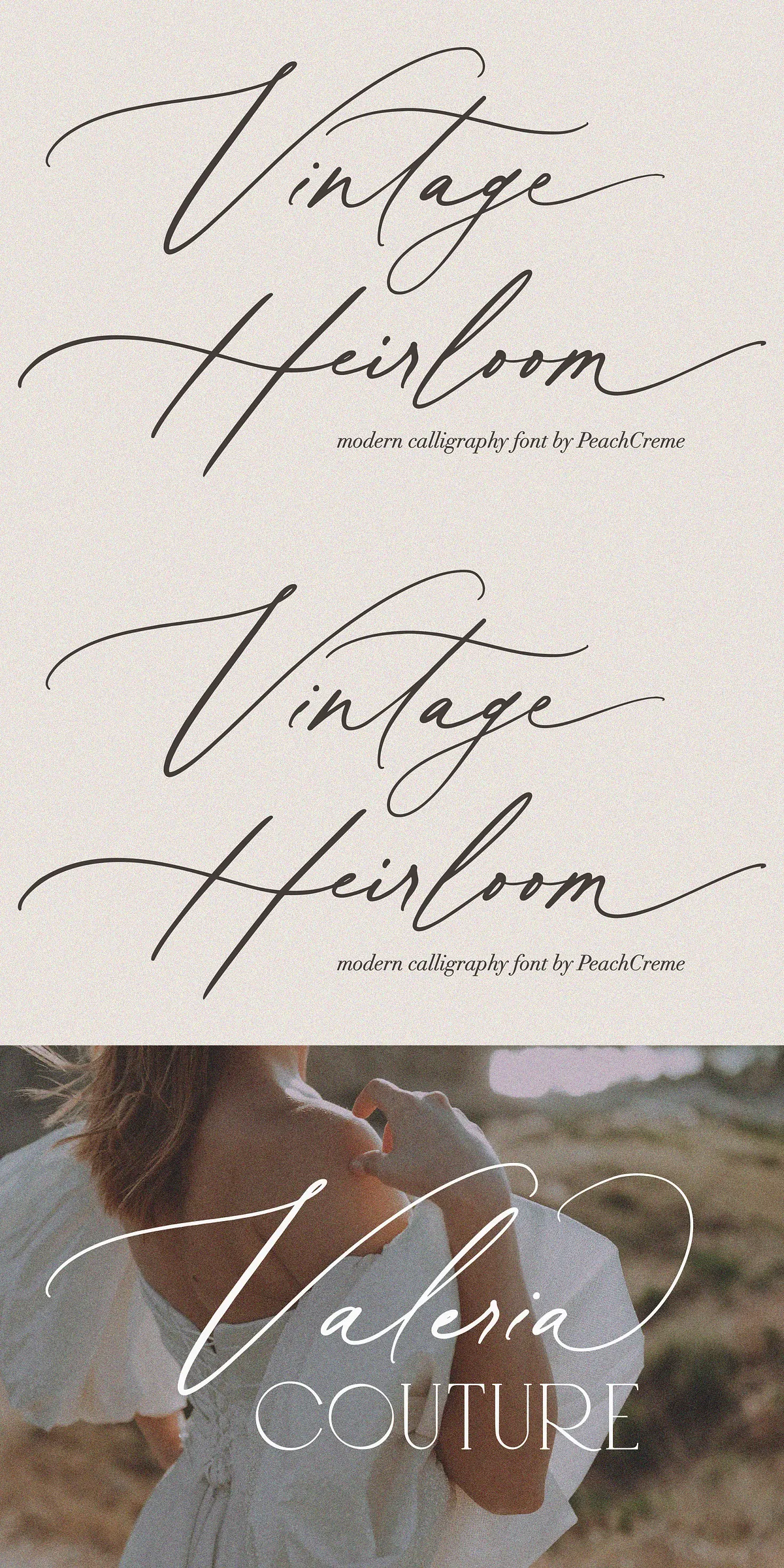 - Combine Vintage Heirloom with a clean sans‑serif for contrast; the script shines as a headline or accent while the sans‑serif handles body copy.