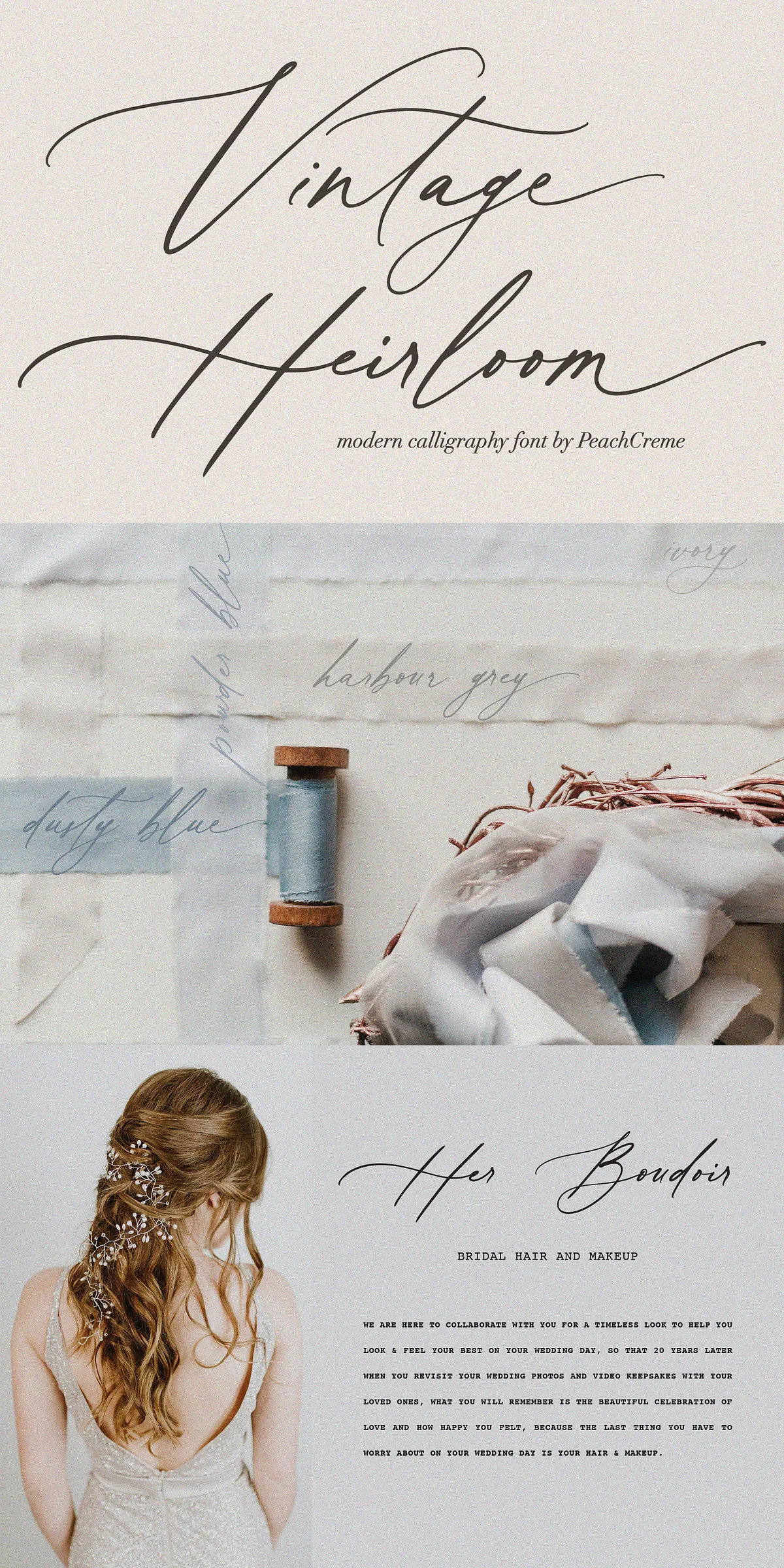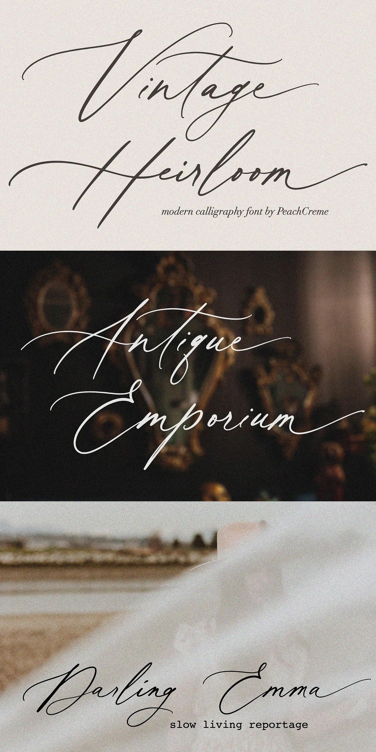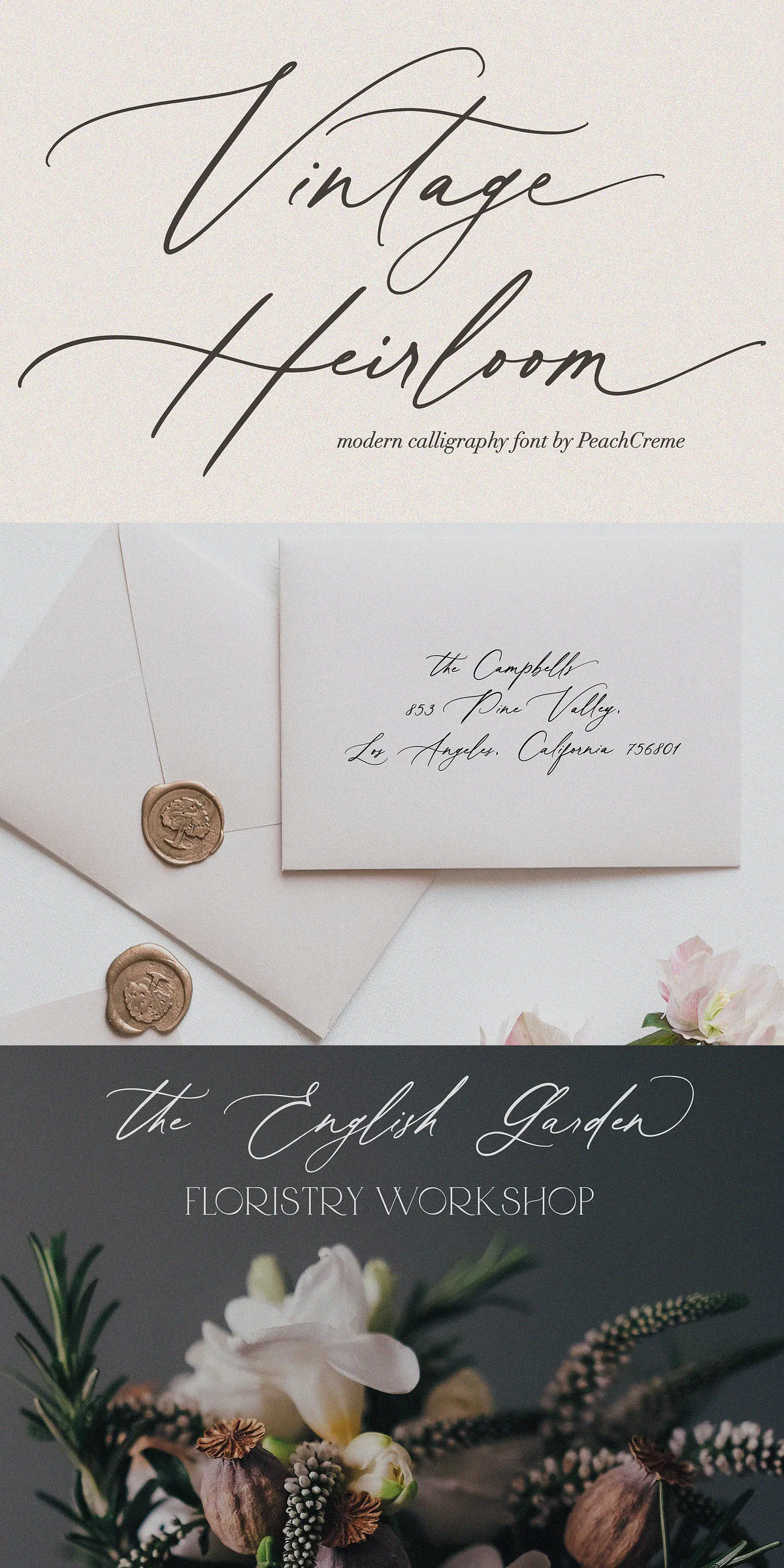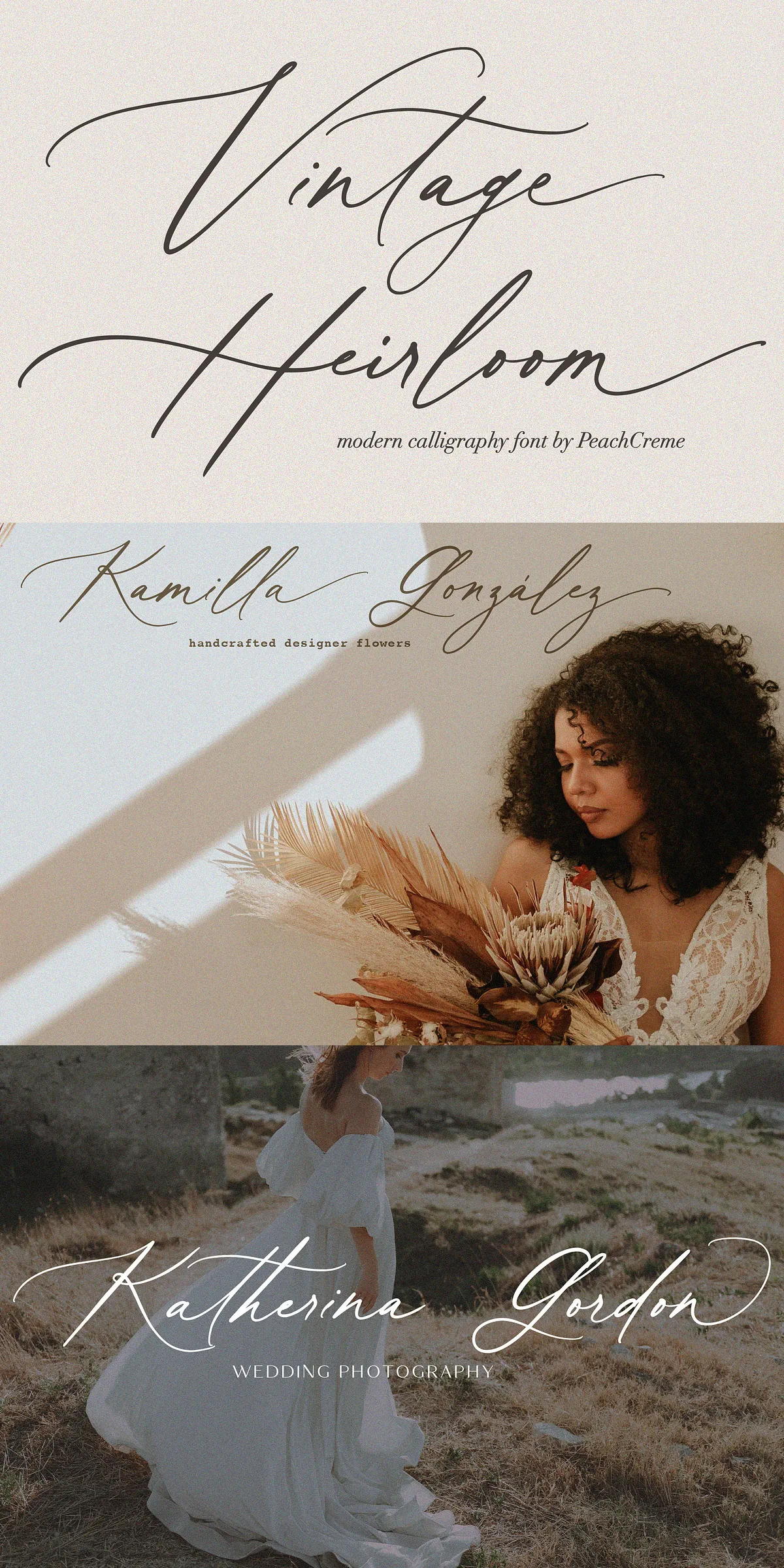 - Combine Vintage Heirloom with a clean sans‑serif for contrast; the script shines as a headline or accent while the sans‑serif handles body copy.