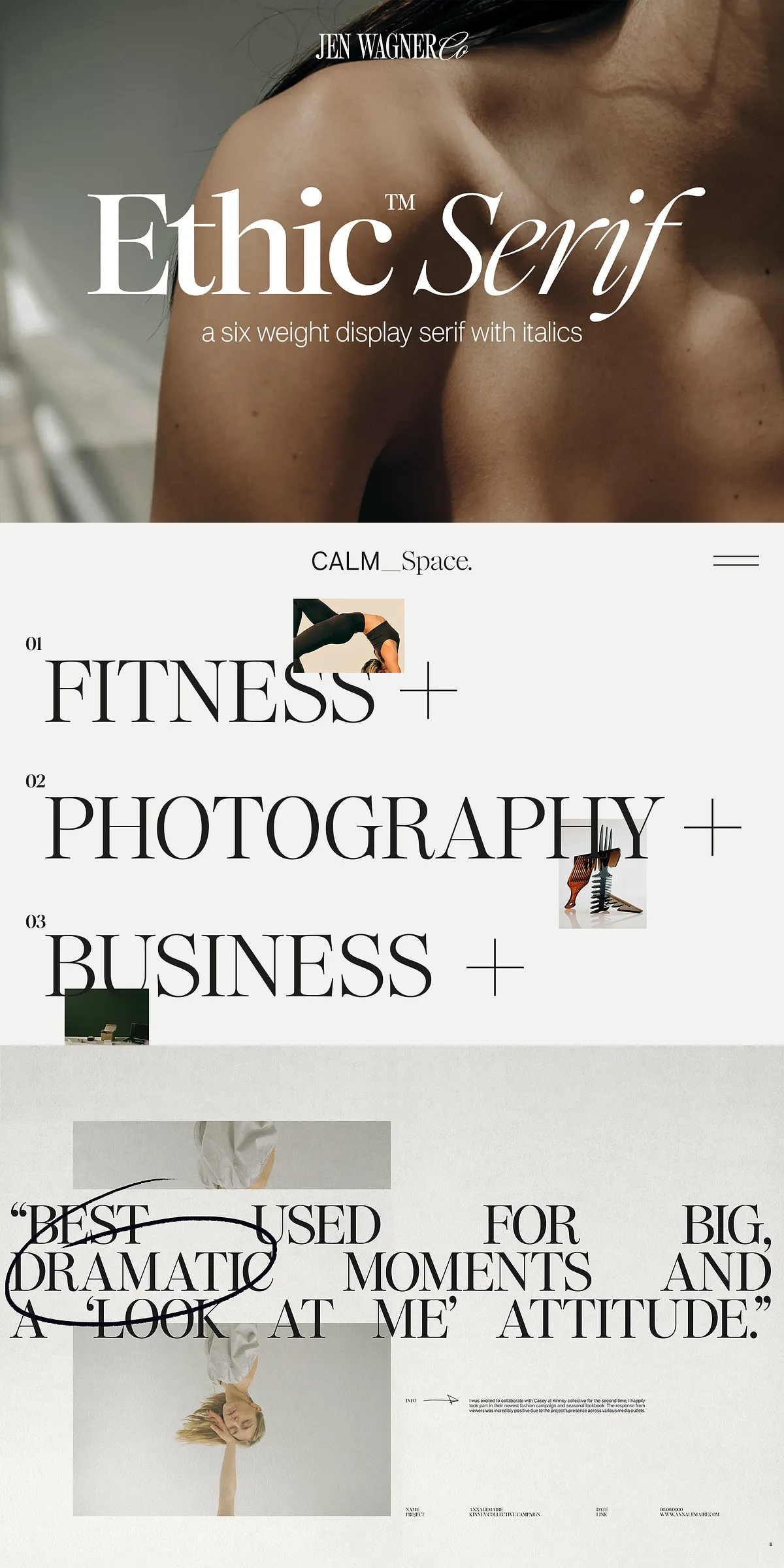 Ethic™ Serif was made for high-end branding, editorial design, fashion portfolios, and any project where typography isn’t just functional — it’s central to the message. Its refined structure exudes confidence, making it ideal for: