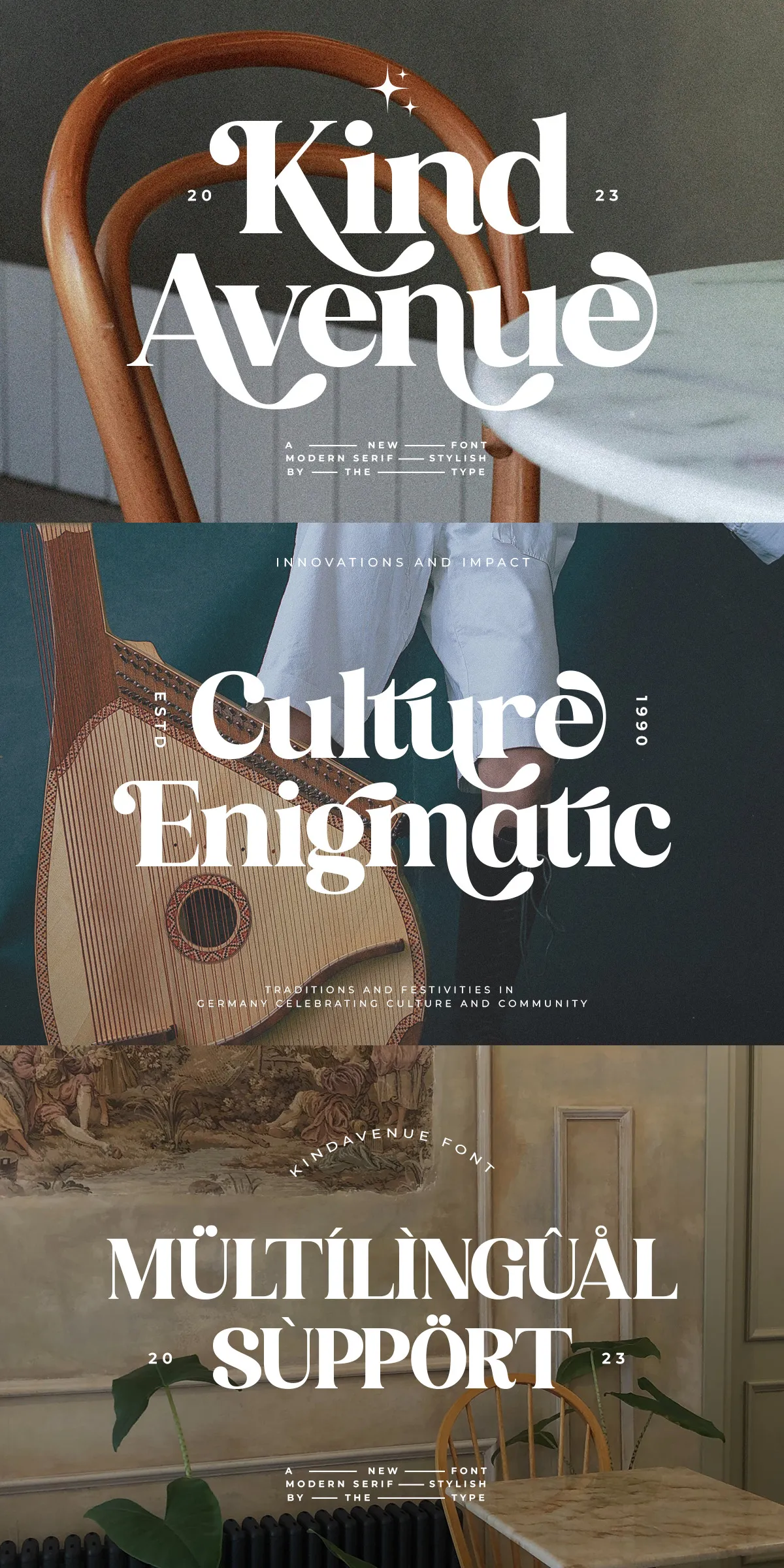 Built for professional use and creative play alike, Kind Avenue delivers features that go beyond basic typography: