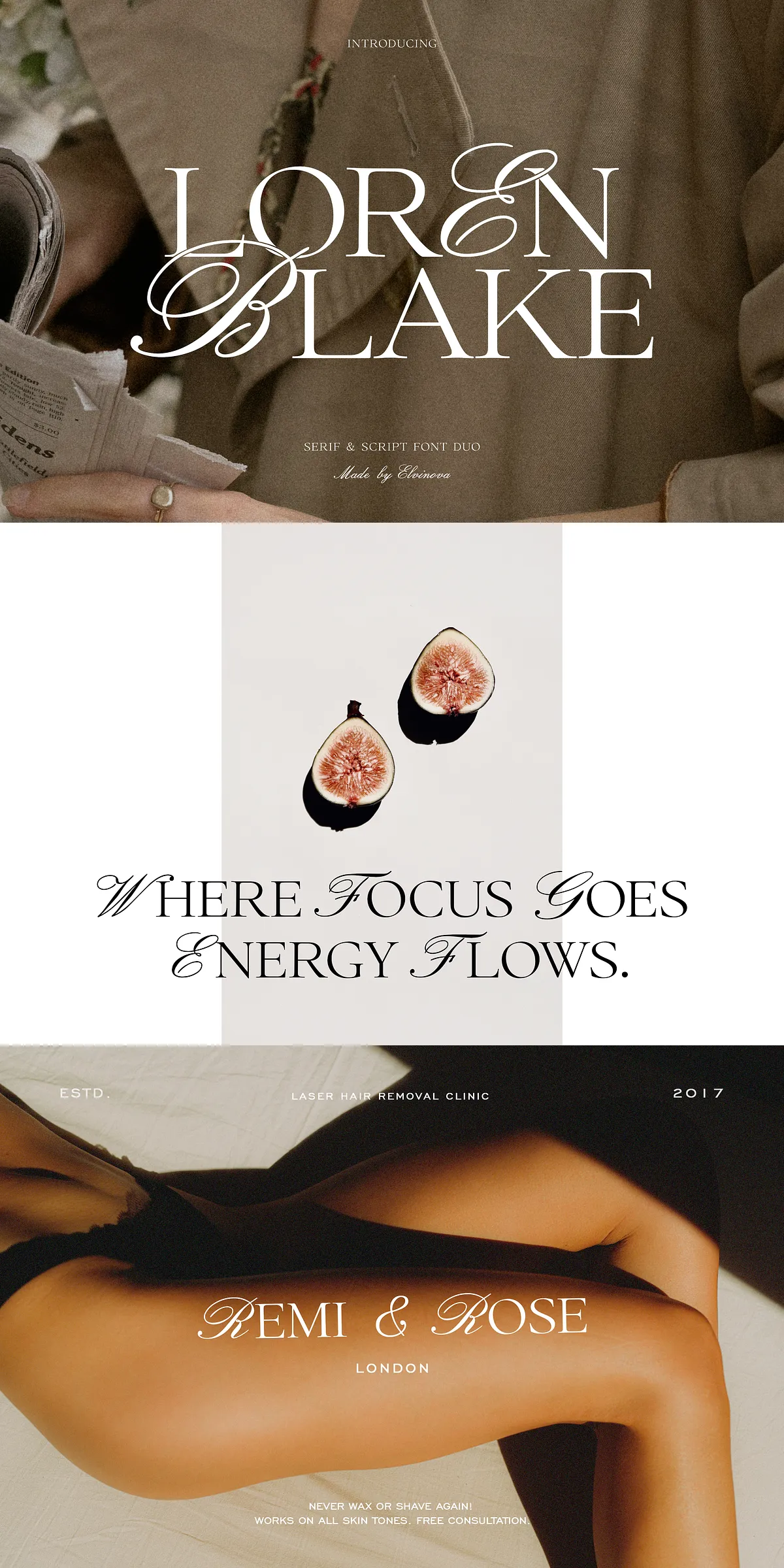 Loren Blake isn’t a single font — it’s a complete visual language composed of three distinct yet harmonious typefaces: