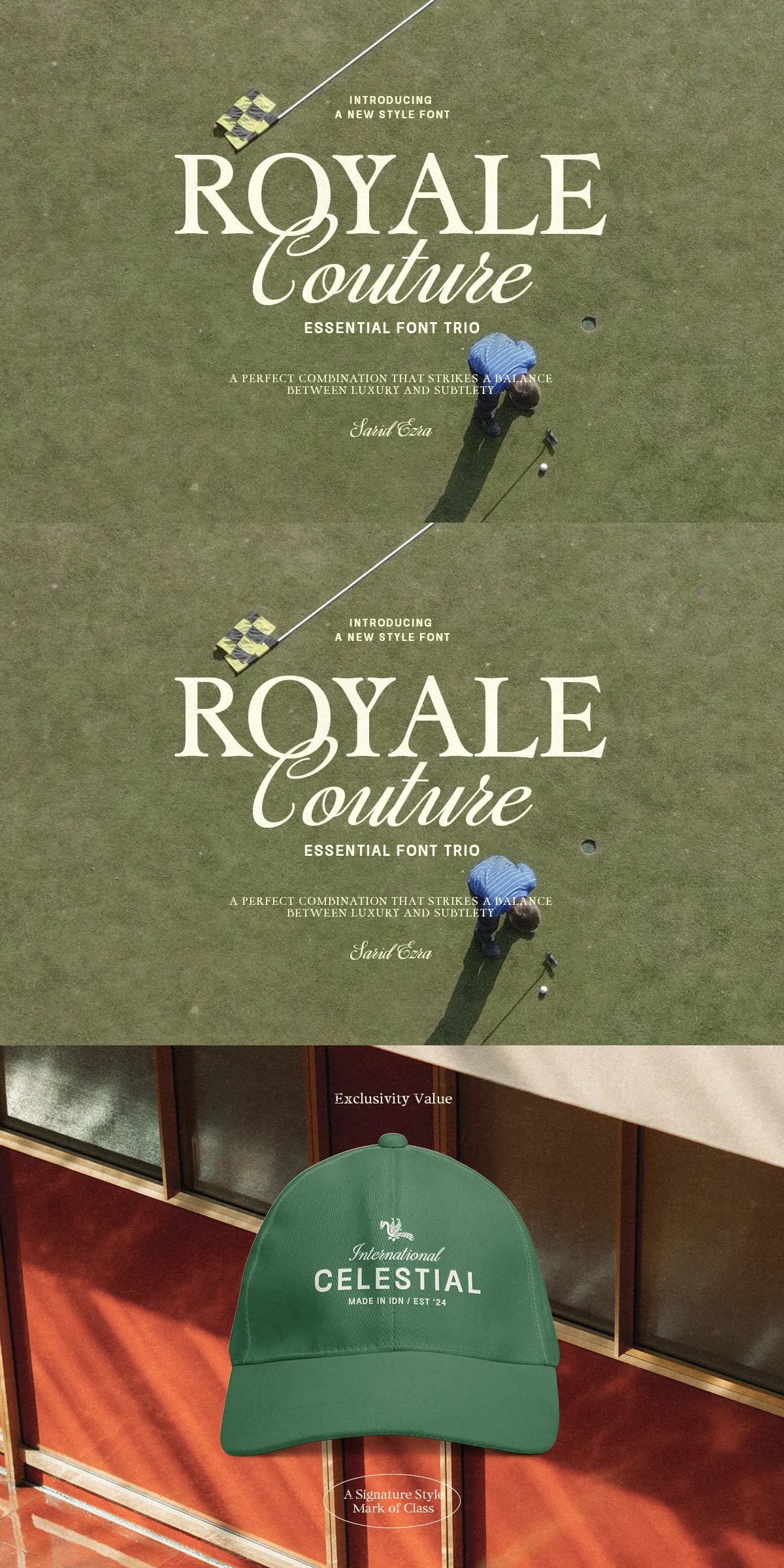 • Product Labels & Packaging: Add sophistication to high-end packaging with a typographic trio that speaks luxury.