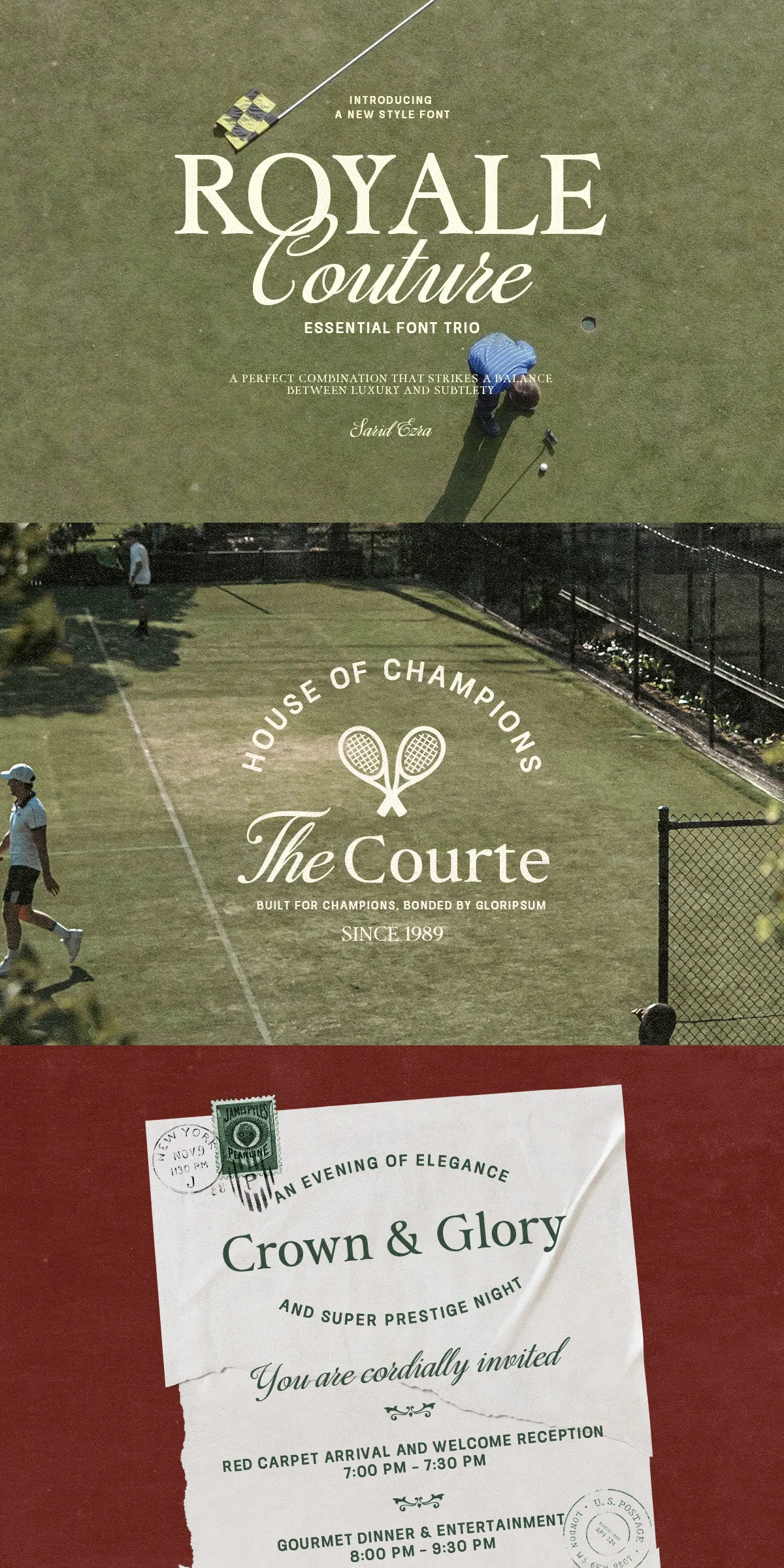 While most font sets require hours of trial-and-error pairing, Royale Couture was designed from the ground up to work together — naturally, intuitively, beautifully. Each font in the trio shares a cohesive design language, yet maintains its own distinct character. You get the dramatic impact of a bold serif, the clean clarity of a neutral sans, and the romantic flair of a refined script — all unified under a single artistic vision.
