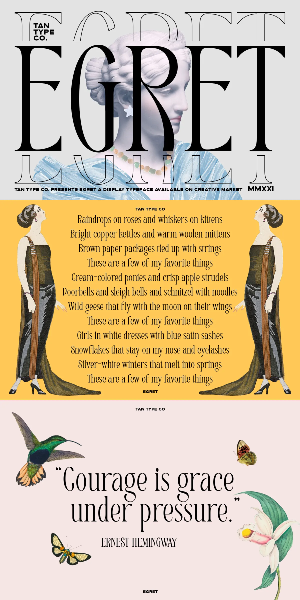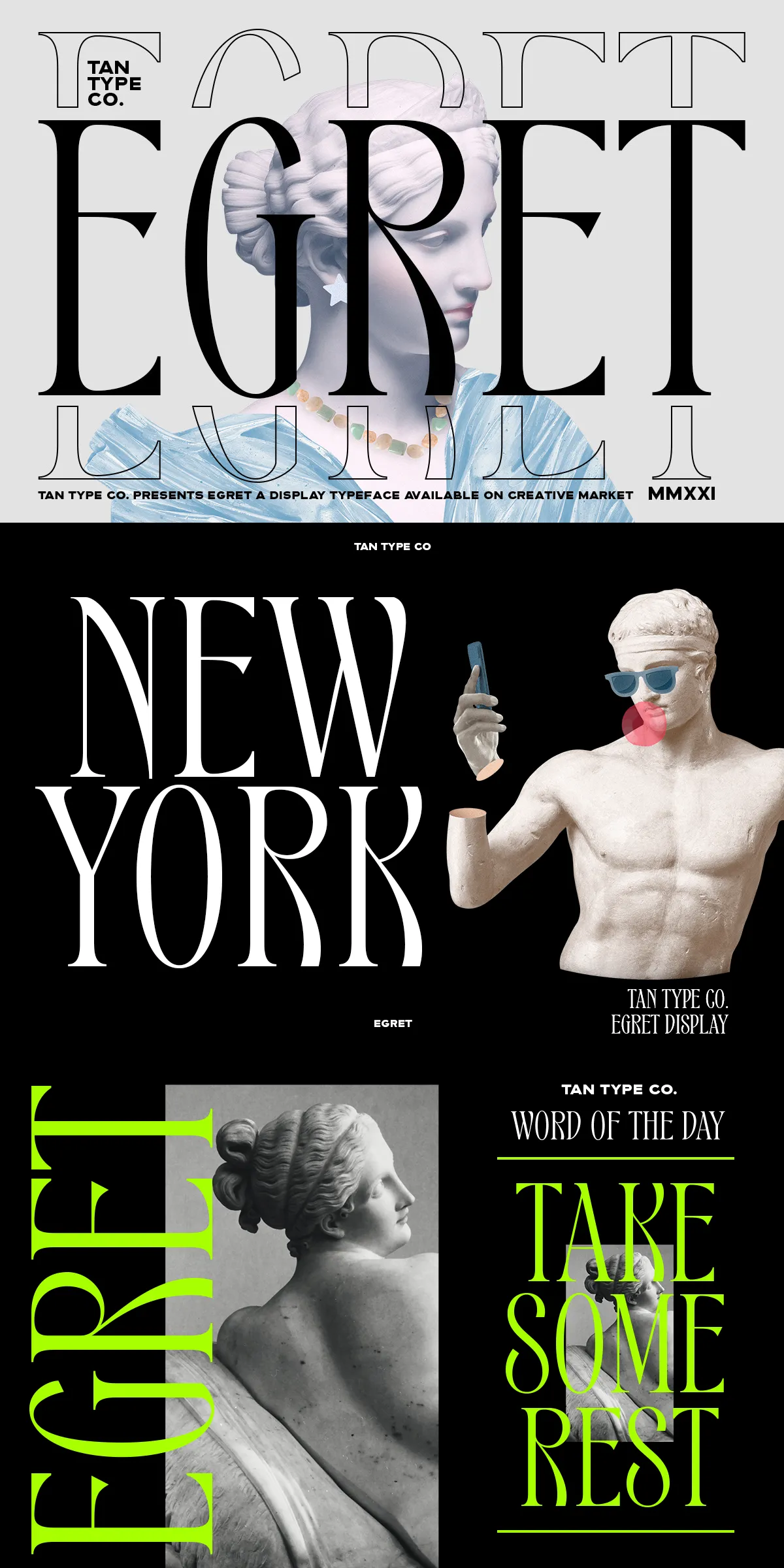 - Editorial & Magazine Design – Use Tan Egret as a headline font to create dramatic impact and visual rhythm in long-form content.