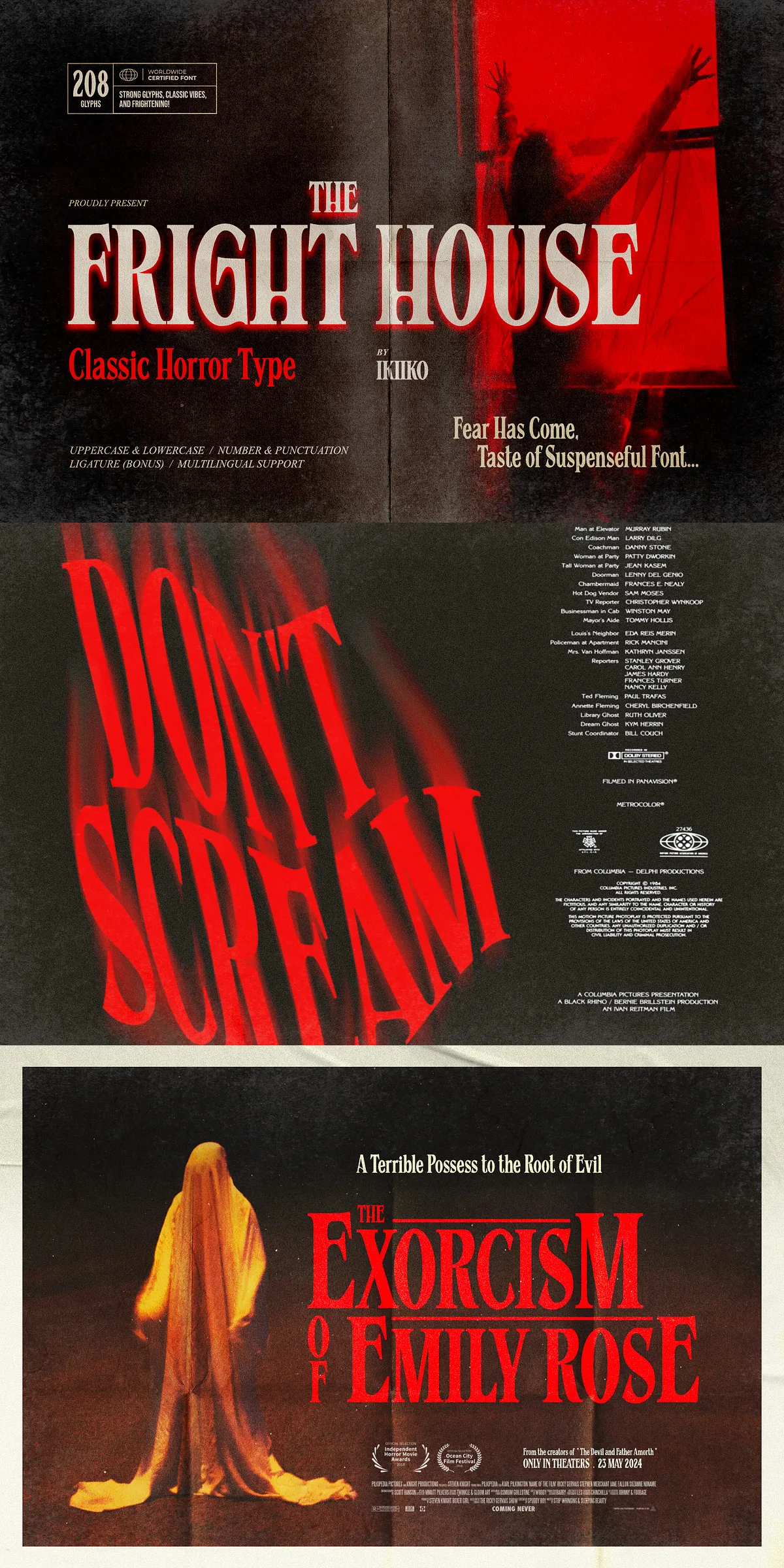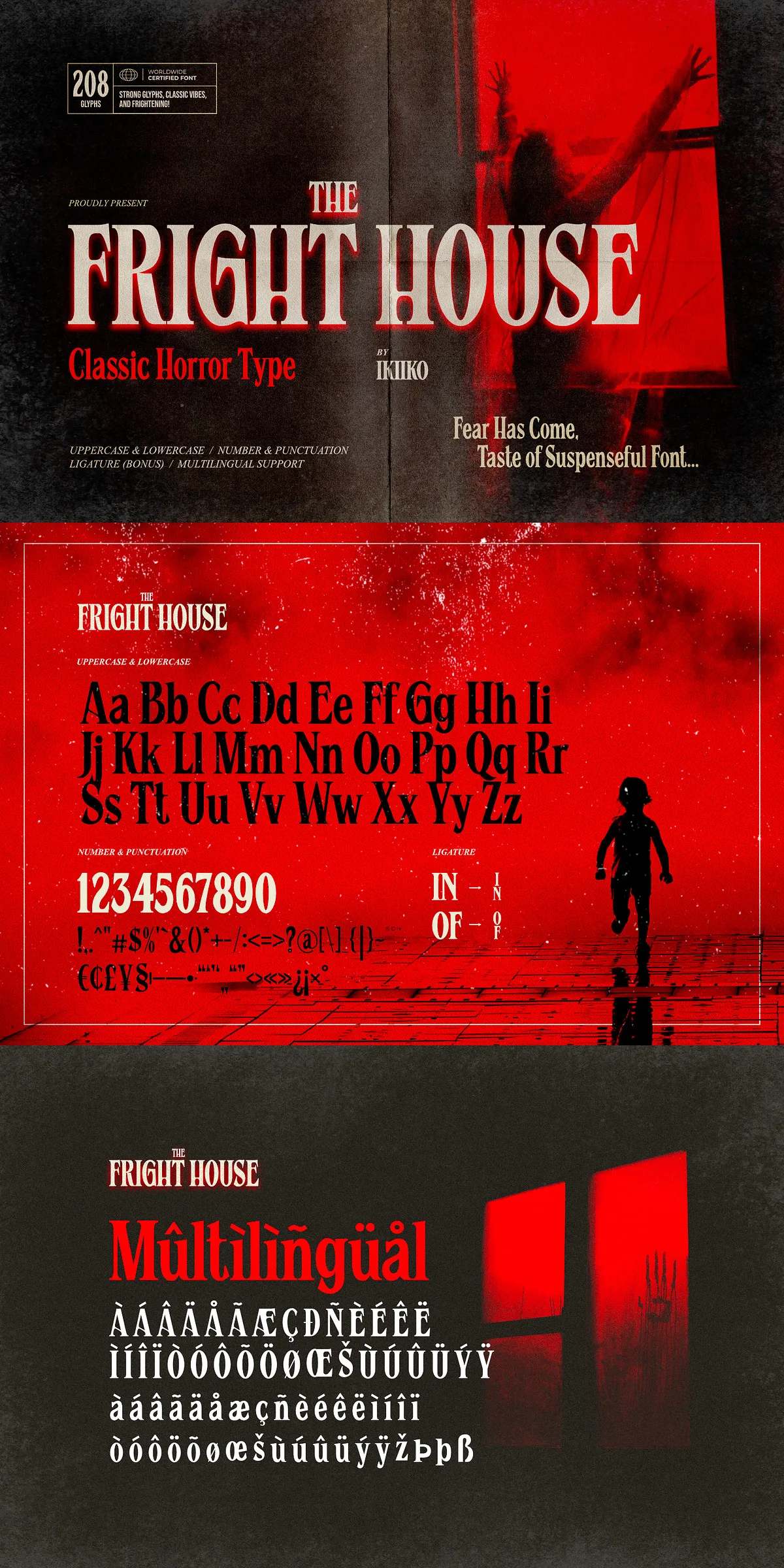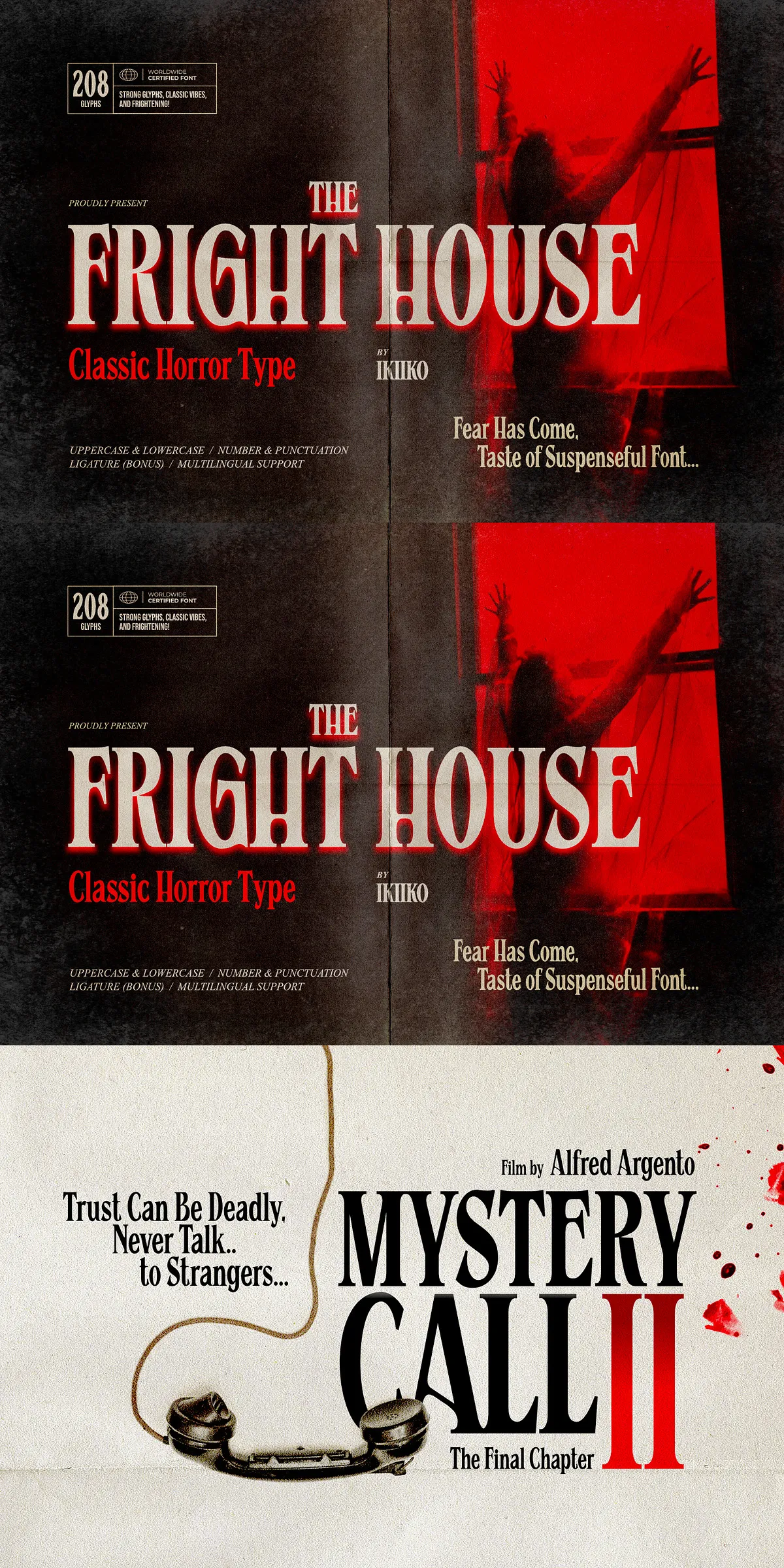 Unlike generic horror fonts that rely on clichés, Fright House is built on authenticity. It honors the original typefaces used in the golden age of horror — when design wasn’t about shock, but about storytelling through typography. This is not a gimmick. It’s a tribute to a legacy of visual dread.